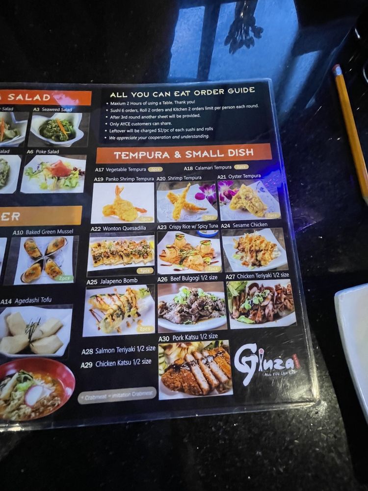Ginza AYCE Sushi in Torrance offers a diverse menu with options for everyone, including vegan and limited vegetarian choices. The restaurant provides an array of amenities such as delivery, takeout, and wheelchair accessibility. The ambiance is casual yet trendy, with a full bar, free Wi-Fi, and outdoor seating options. Customers rave about the attentive service and delicious sushi, highlighting the freshness and variety of the fish. The AYCE concept allows diners to enjoy a wide selection of rolls and sashimi without compromising on quality. The baked rolls and specialty dishes like the K2 Seared Tuna and S1 House Salad are standouts worth trying. Overall, Ginza AYCE Sushi - Torrance promises a satisfying dining experience for sushi enthusiasts looking for a balance of quantity and quality.