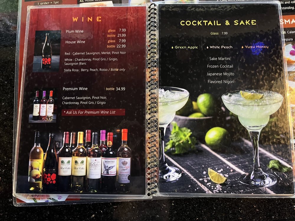 In: Shrimp Tempura, Crabmeat, CucumberOut: Albacore, Avocado, Onion
